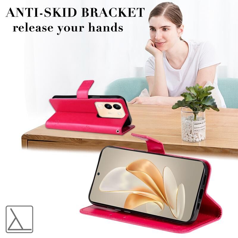 Για το vivo V29e Global / Y200 5G Global Tree & Cat ανάγλυφο μοτίβο Flip δερμάτινη θήκη τηλεφώνου (Rose Red)