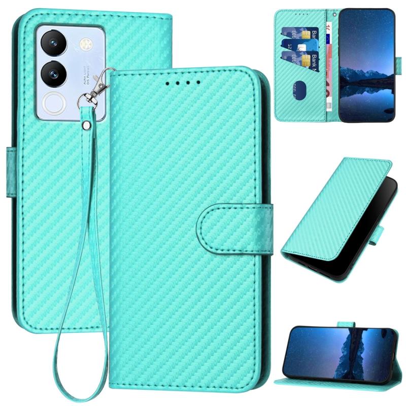 Θήκη τηλεφώνου από δέρμα με ανθρακονήματα και λουρί για vivo V29e Global/Y200 5G Global YX0070 (Κόκκινο)