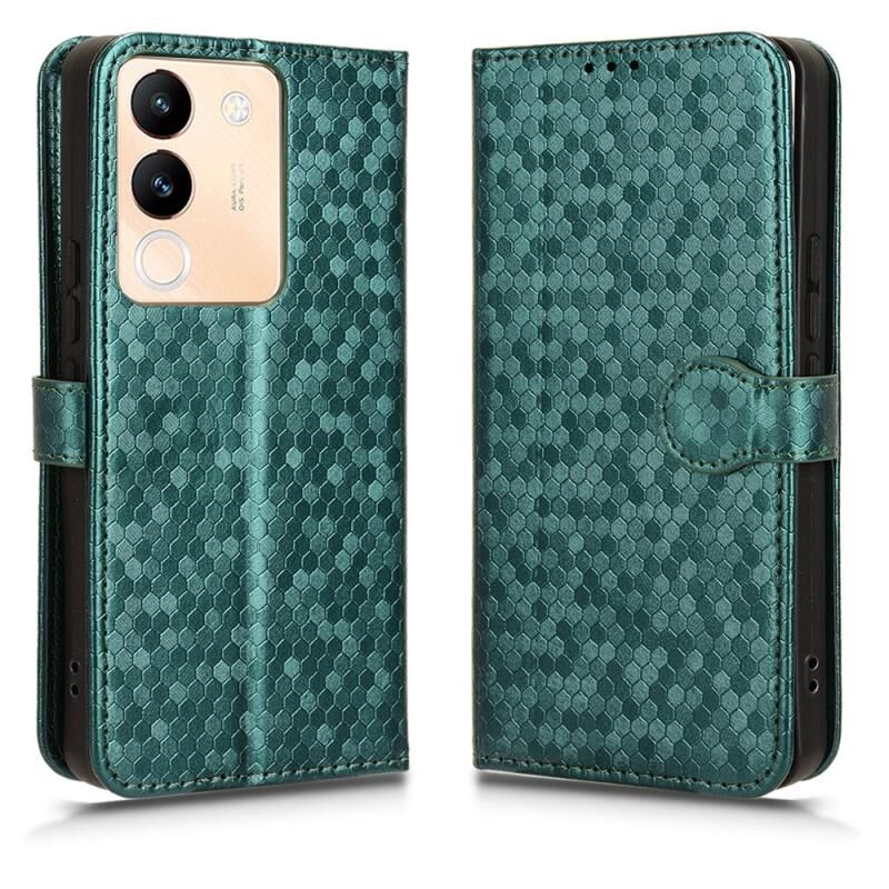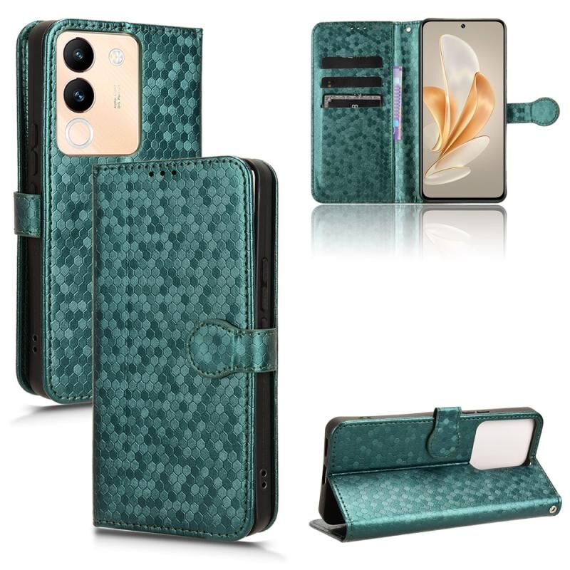 Θήκη τηλεφώνου από δέρμα με υφή κυψελοειδούς κουκκίδας για vivo V29E Global / Y200 Global (Μαύρο)