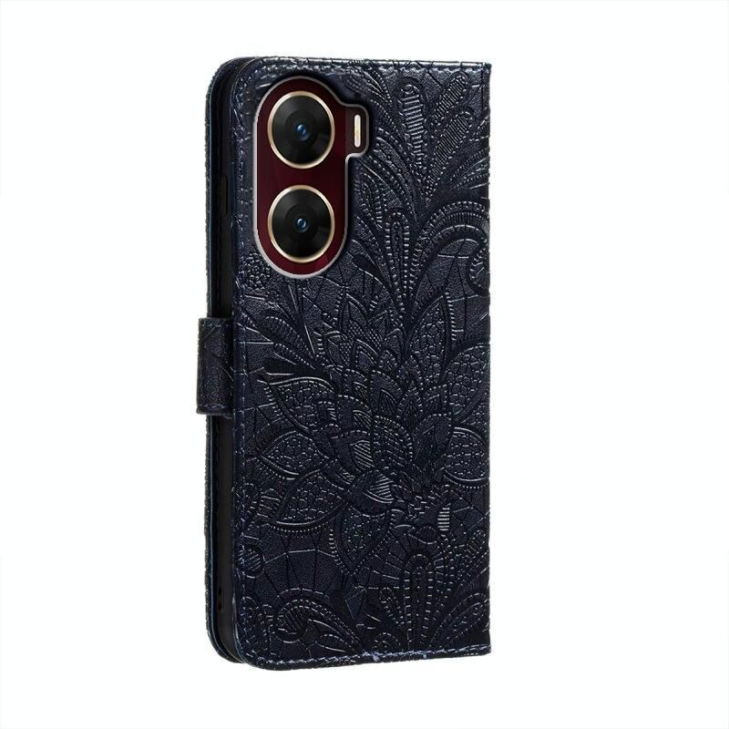Για vivo V29E Lace λουλούδι ανάγλυφο Flip υπόθεση τηλεφώνου δέρμα (Σκούρο μπλε)