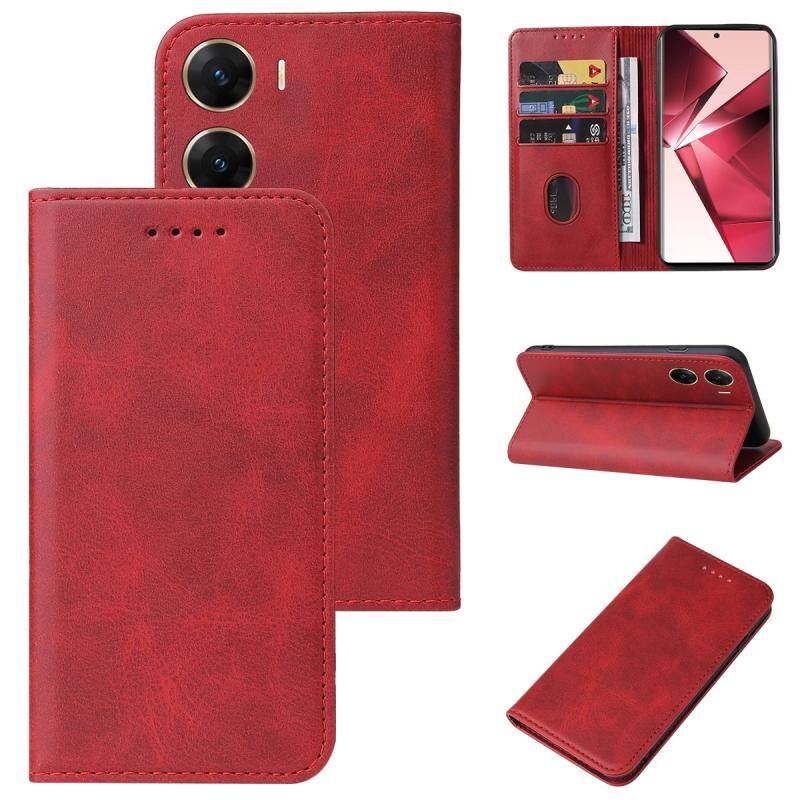 Θήκη τηλεφώνου από δέρμα με μαγνητικό κλείσιμο για vivo V29e (Κόκκινο)
