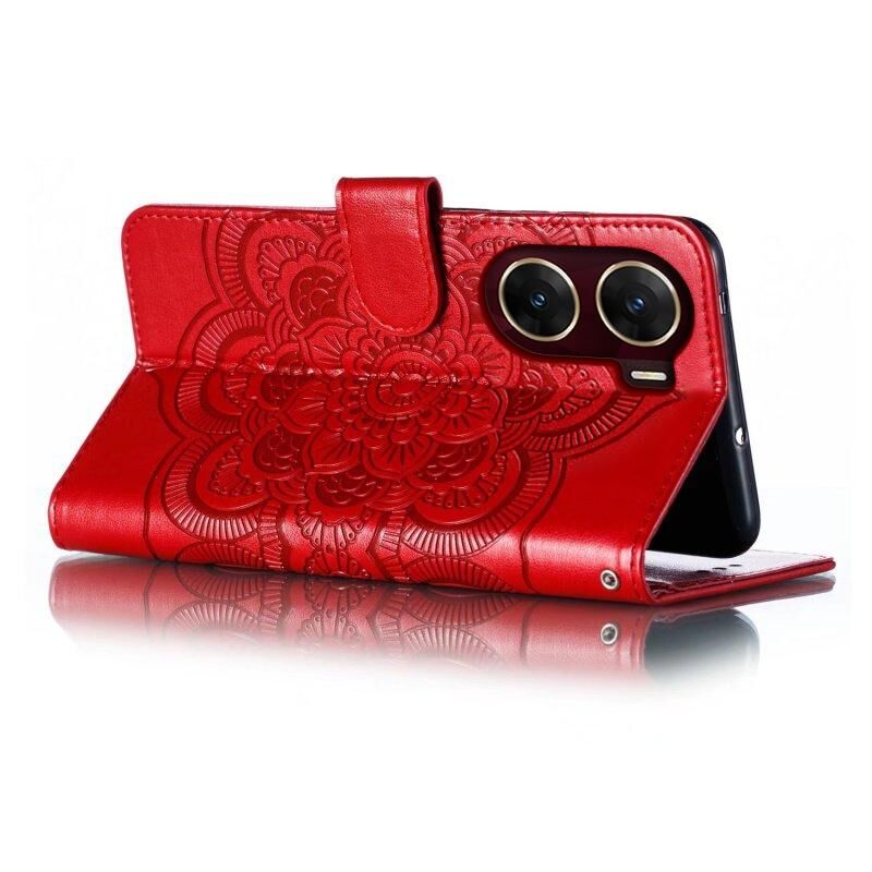 Για vivo V29e Sun Mandala ανάγλυφο μοτίβο τηλέφωνο δερμάτινη θήκη (Κόκκινο)