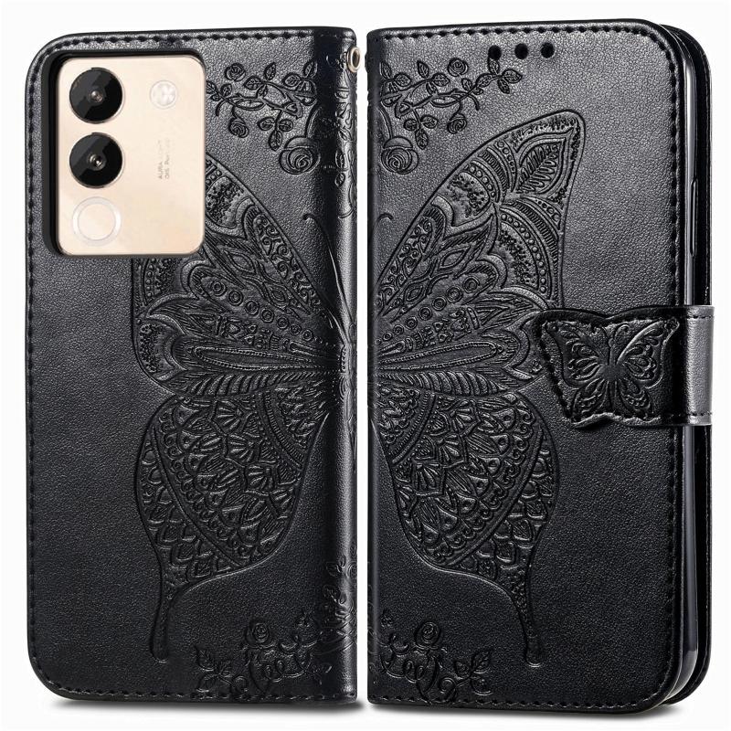 For vivo V29e / Y200 Butterfly Love Flower Embossed Leather Phone Case(Black)