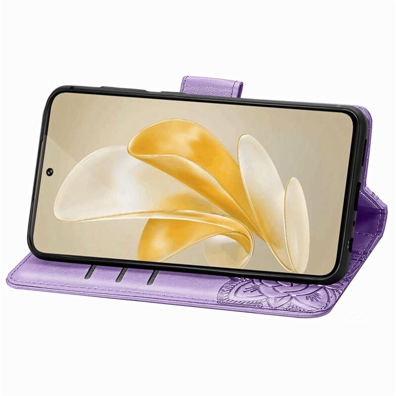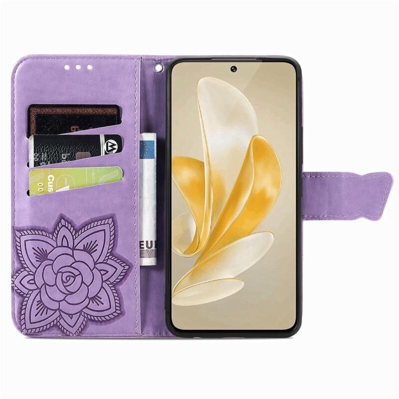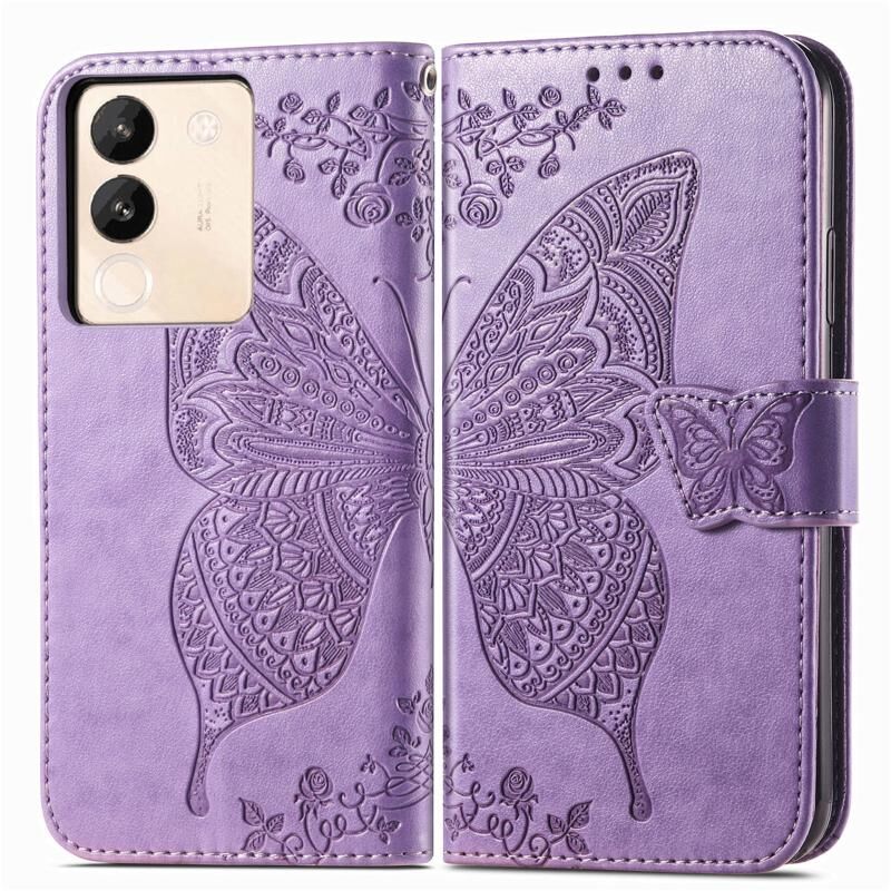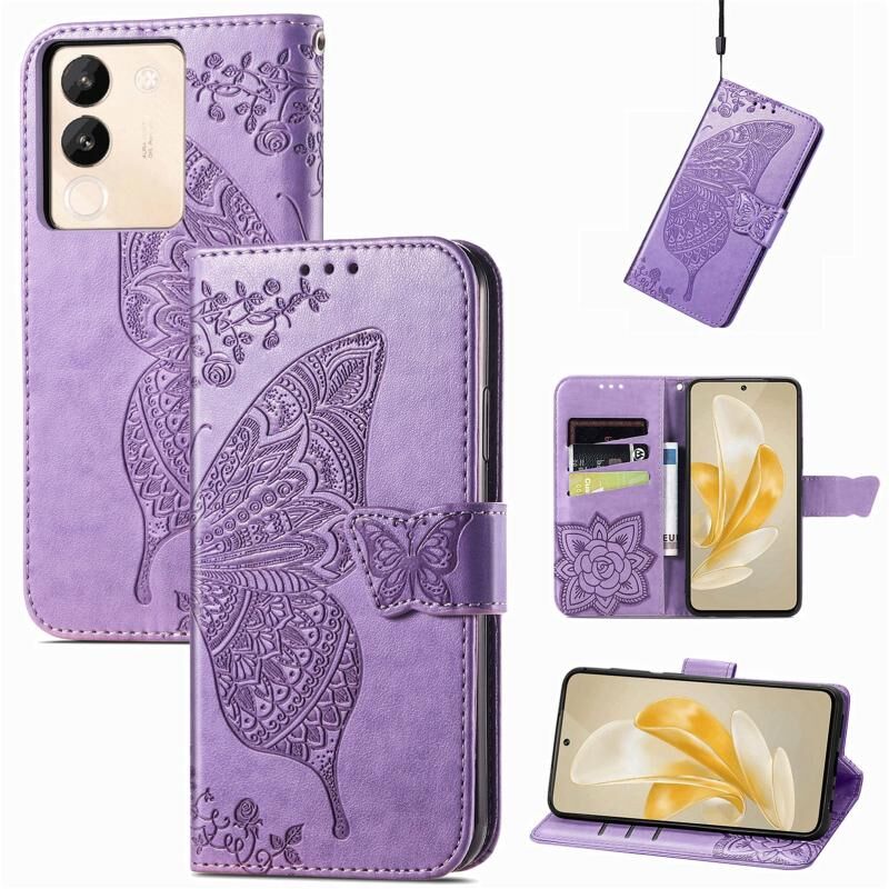 Θήκη τηλεφώνου από δέρμα με ανάγλυφο σχέδιο πεταλούδας και λουλουδιών για vivo V29e / Y200 (Λεβάντα)