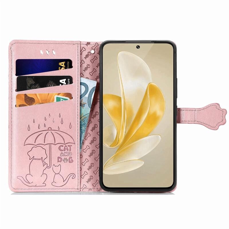 Θήκη τηλεφώνου από δέρμα με ανάγλυφο σχέδιο γάτας και σκύλου για vivo V29e / Y200 (Χρυσορόδινο)