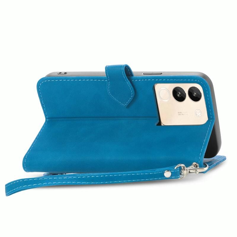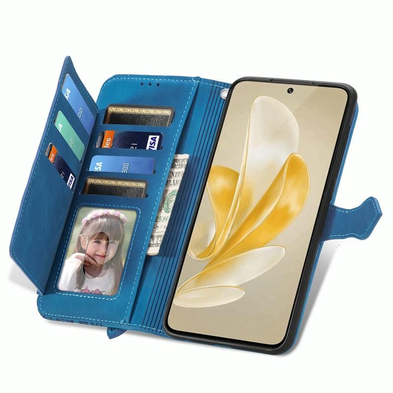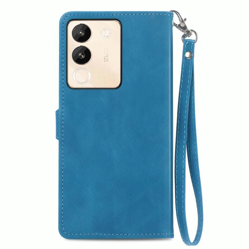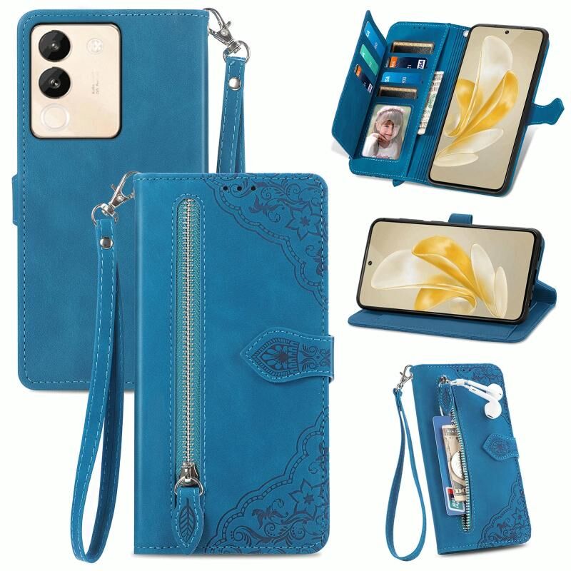 Θήκη τηλεφώνου από δέρμα με ανάγλυφα λουλούδια και φερμουάρ για vivo V29e / Y200 (Ροζ)