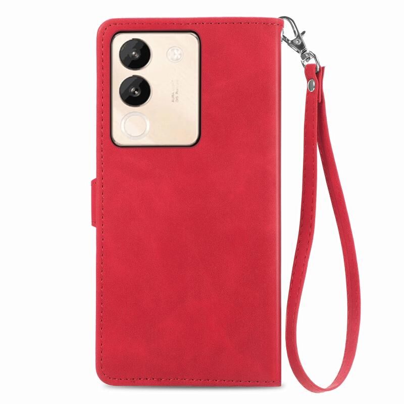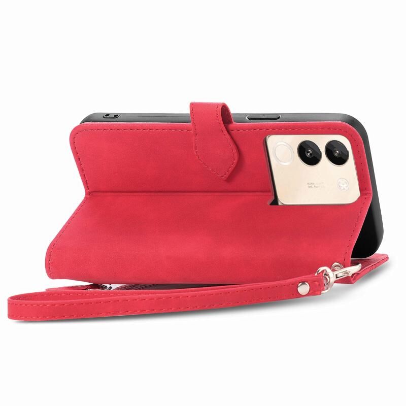 Θήκη τηλεφώνου από δέρμα με ανάγλυφα λουλούδια και φερμουάρ για vivo V29e / Y200 (Ροζ)