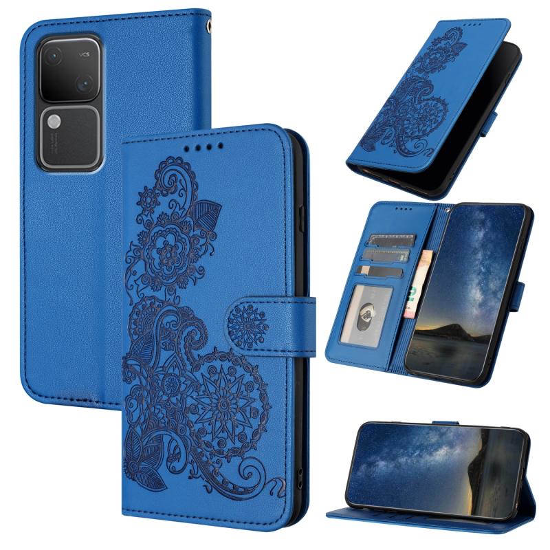 For vivo V30 5G Global/V30 Pro 5G Global Datura Flower Embossed Flip Leather Phone Case(Blue)
