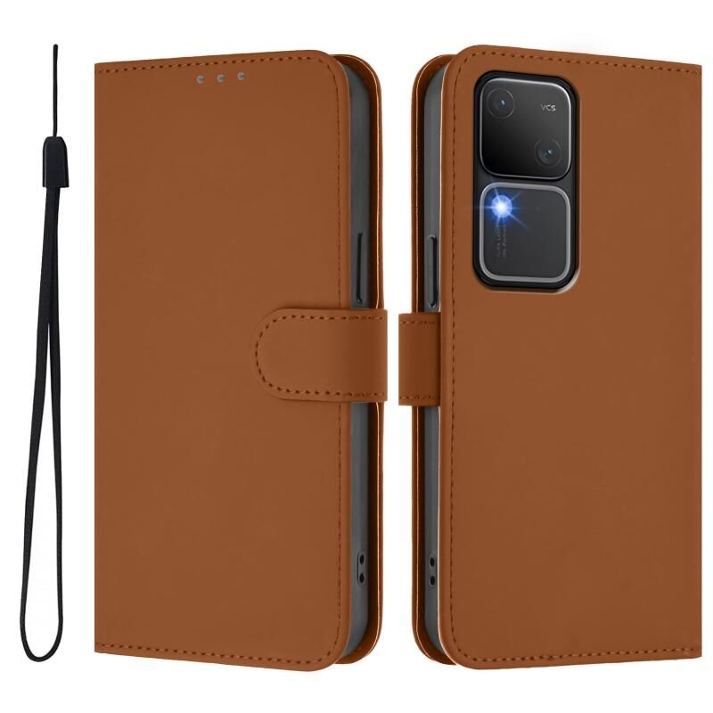 Θήκη τηλεφώνου από δέρμα με συμπαγή χρώματα και αίσθηση δέρματος για vivo V30 5G Global / V30 Pro Global με κορδόνι (Καφέ)