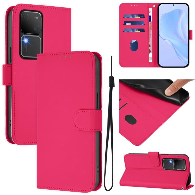 For vivo V30 5G Global / V30 Pro Global Skin Feel Solid Color Leather Phone Case with Lanyard(Rose Red)