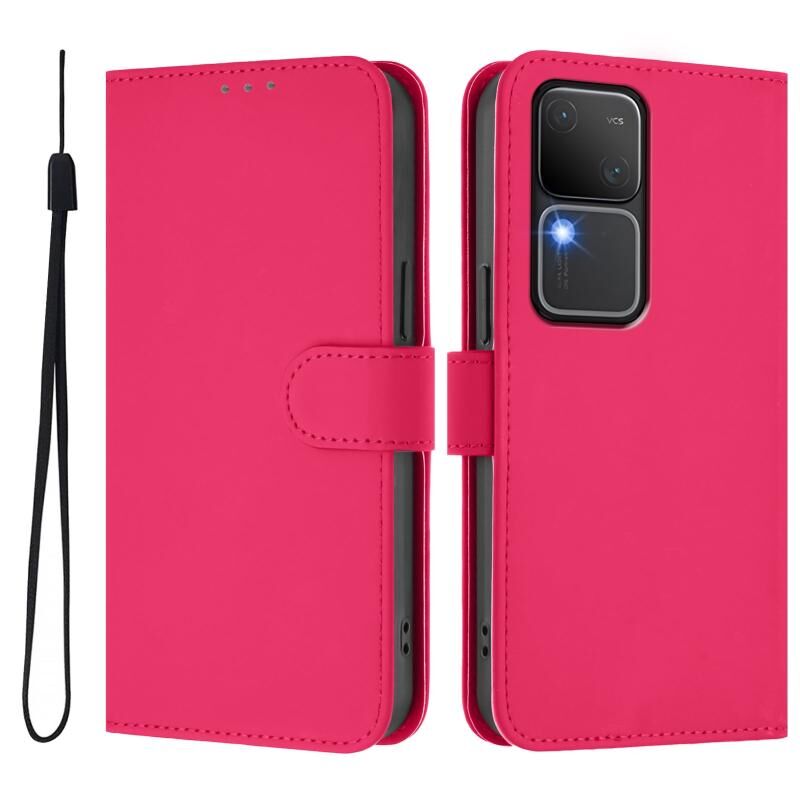 Θήκη τηλεφώνου από δέρμα με συμπαγή χρώματα και αίσθηση δέρματος για vivo V30 5G Global / V30 Pro Global με κορδόνι (Ροζέ κόκκινο)