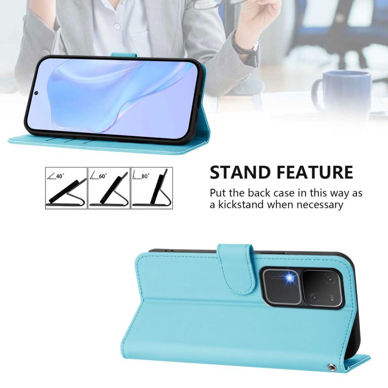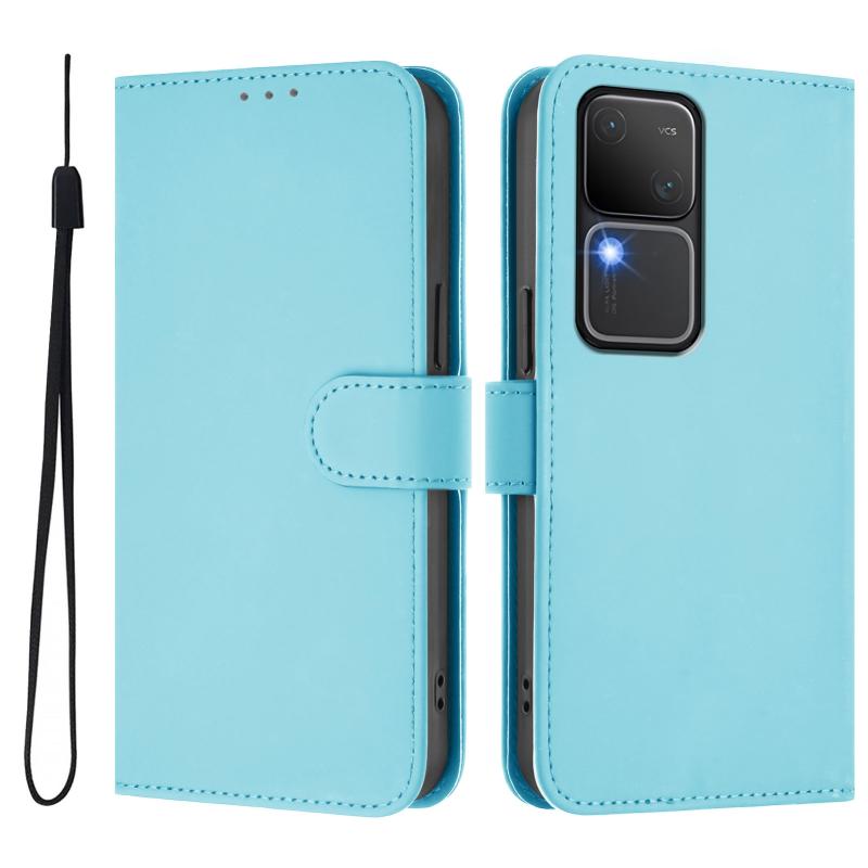 For vivo V30 5G Global / V30 Pro Global Skin Feel Solid Color Leather Phone Case with Lanyard(Sky Blue)