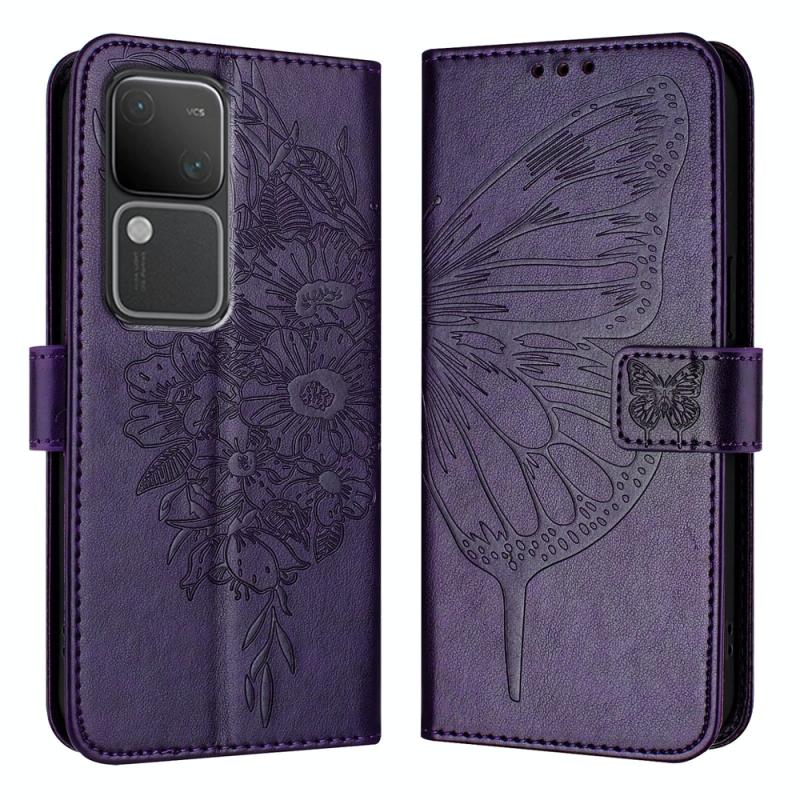 For vivo V30 5G/V30 Pro 5G Global Embossed Butterfly Leather Phone Case(Dark Purple)