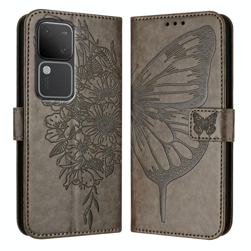 For vivo V30 5G/V30 Pro 5G Global Embossed Butterfly Leather Phone Case(Grey)