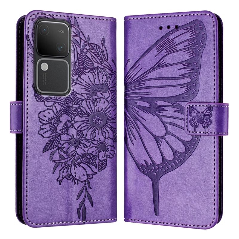 For vivo V30 5G/V30 Pro 5G Global Embossed Butterfly Leather Phone Case(Light Purple)