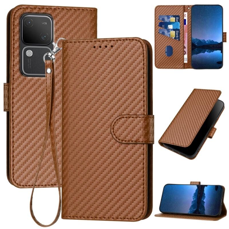 Θήκη τηλεφώνου από δέρμα με πόρπη από ανθρακονήματα και λουρί για vivo V30 5G / V30 Pro 5G Global YX0070 (Καφέ)