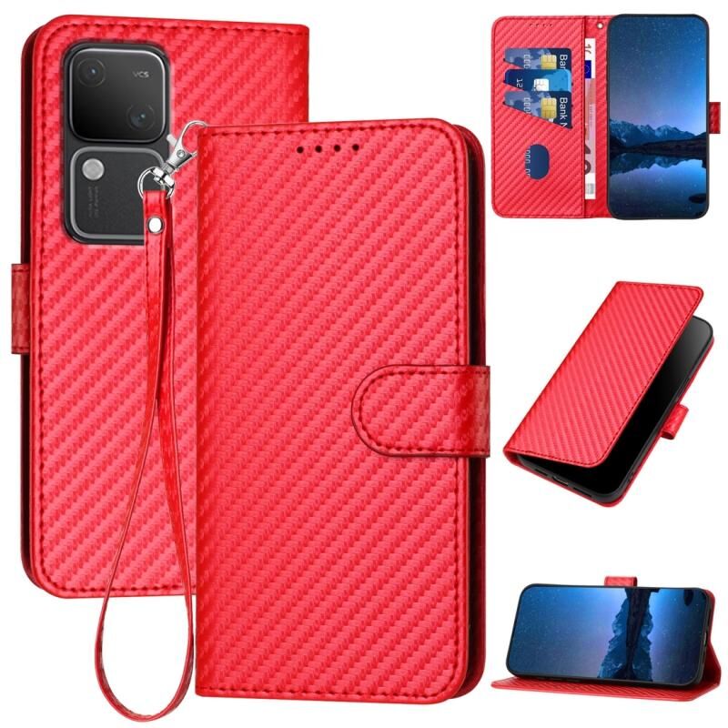 Θήκη τηλεφώνου από δέρμα με πόρπη από ανθρακονήματα και λουρί για vivo V30 5G / V30 Pro 5G Global YX0070 (Κόκκινο)