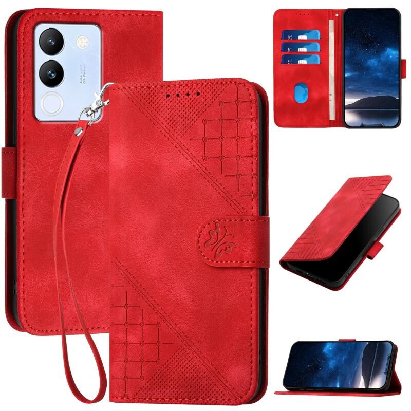 Θήκη τηλεφώνου δερμάτινη με ανάγλυφο σχέδιο πεταλούδας και κορδόνι για vivo V30 Lite 5G Global Grid (Σκούρο Μπλε)