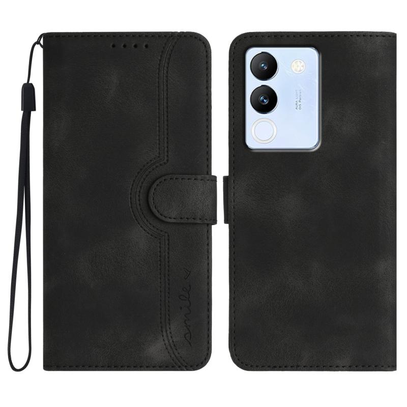 For vivo V30 Lite 5G Global Heart Pattern Skin Feel Leather Phone Case(Black)