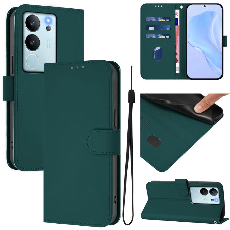 For vivo V30 Lite 5G Global Skin Feel Solid Color Leather Phone Case with Lanyard(Dark Green)