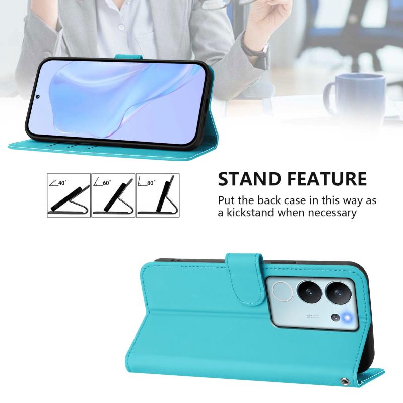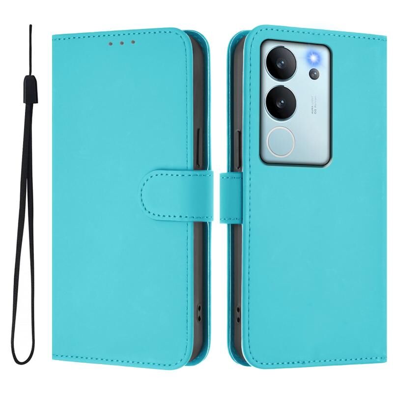 Θήκη τηλεφώνου από δέρμα με συμπαγή χρώματα και κορδόνι για vivo V30 Lite 5G Global (Καφέ)