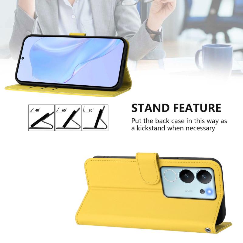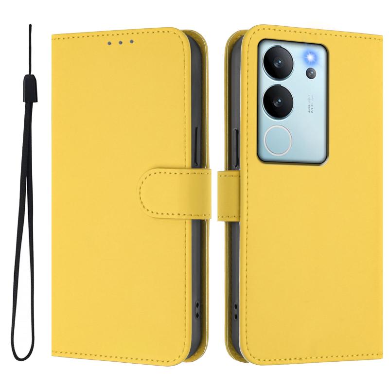 Θήκη τηλεφώνου από δέρμα με συμπαγή χρώματα και κορδόνι για vivo V30 Lite 5G Global (Καφέ)