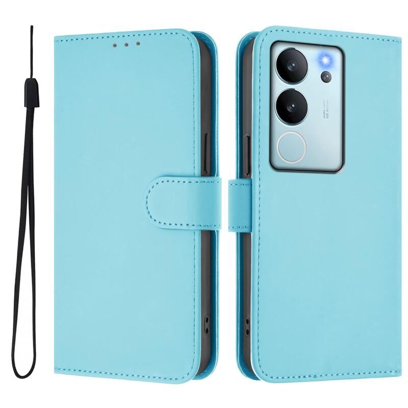 Θήκη τηλεφώνου από δέρμα με συμπαγή χρώματα και κορδόνι για vivo V30 Lite 5G Global (Καφέ)