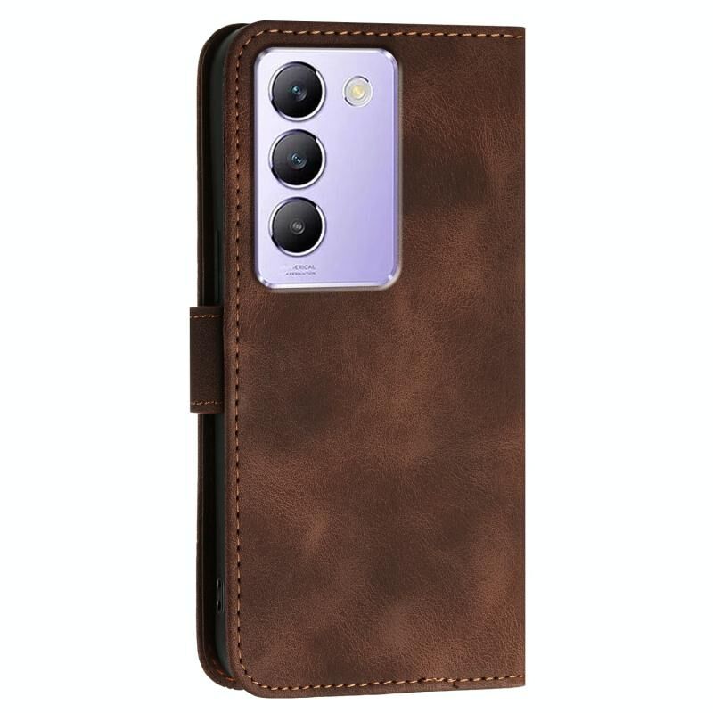Θήκη τηλεφώνου δερμάτινη με ανάγλυφο σχέδιο πεταλούδας και κορδόνι για vivo V30 Lite 5G India Grid (Καφέ)