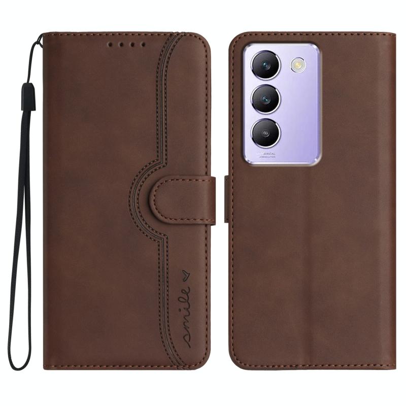 For vivo V30 Lite 5G India/T3 5G IDN Heart Pattern Skin Feel Leather Phone Case(Brown)