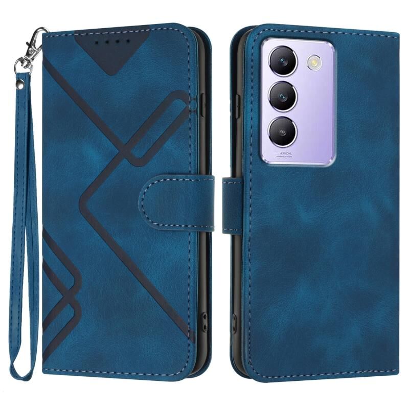 Για vivo V30 Lite 5G India/T3 5G IDN Line Pattern Skin Feel Leather Phone Case (Royal Blue)