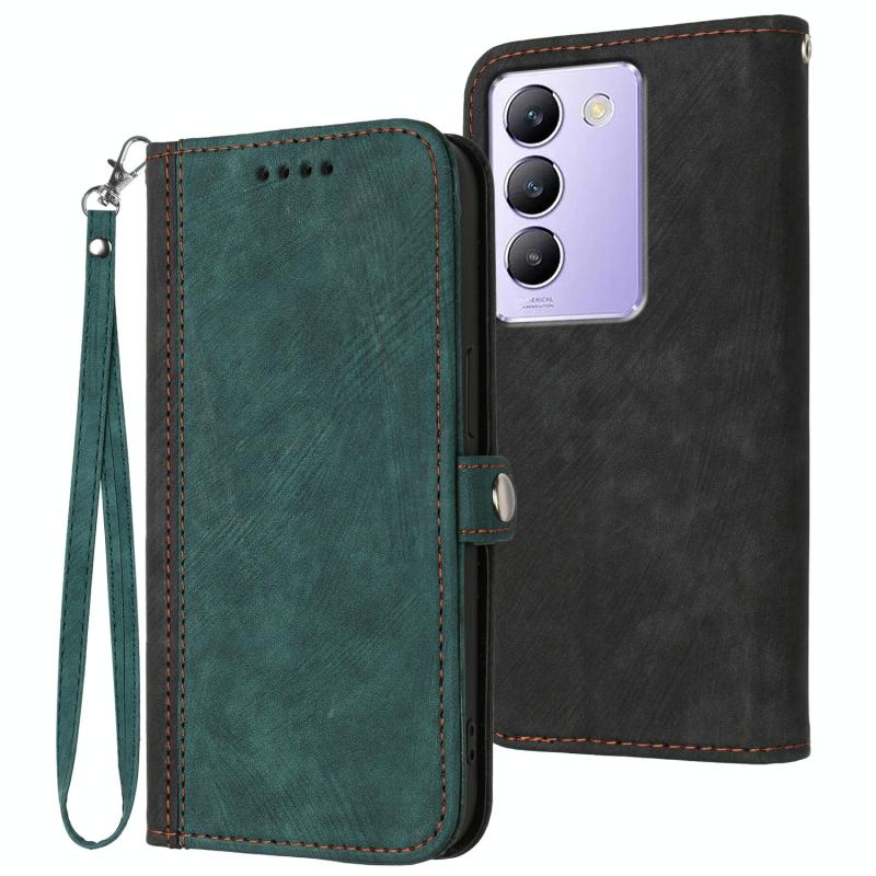 For vivo V30 Lite 5G India/T3 5G IDN Side Buckle Double Fold Hand Strap Leather Phone Case(Dark Green)