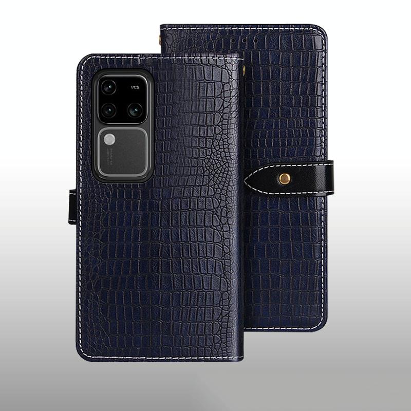 Θήκη τηλεφώνου idewei Crocodile Texture Leather για vivo V30 Pro (Σκούρο Μπλε) (Σκούρο μπλε)