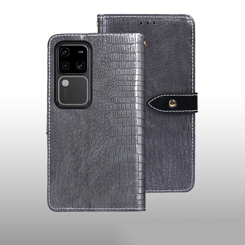 Θήκη τηλεφώνου idewei Crocodile Texture Leather για vivo V30 Pro (Σκούρο Μπλε) (Γκρι)