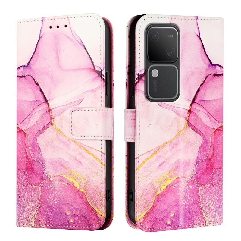 Θήκη τηλεφώνου από δέρμα με σχέδιο μαρμάρου για vivo V30 / V30 Pro 5G (Ροζ Μωβ Χρυσό) - Global PT003