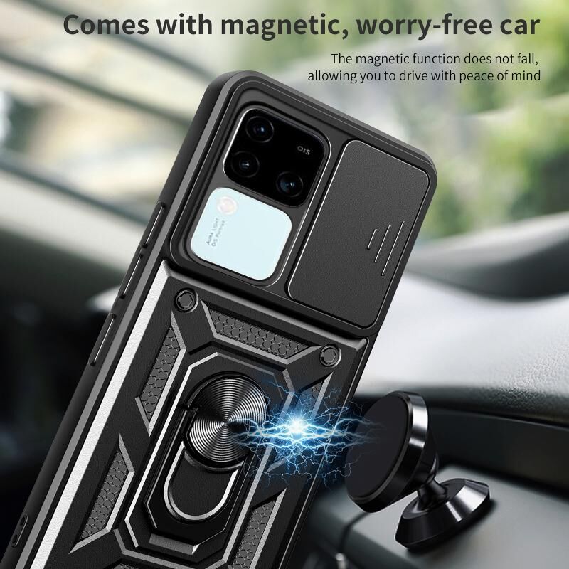Για το vivo V30 / V30 Pro Συρόμενη κάμερα Cover Design TPU + PC τηλέφωνο υπόθεση (Μαύρο)