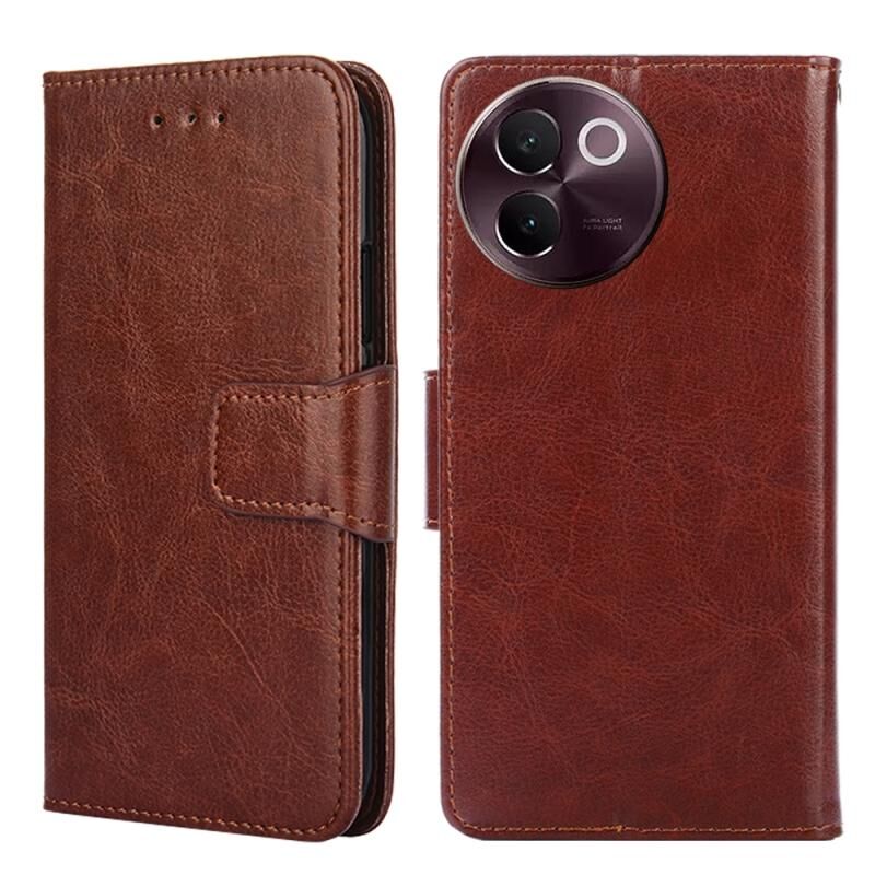 Για vivo V30e 5G Global Crystal Υφή δερμάτινη θήκη τηλεφώνου (καφέ)