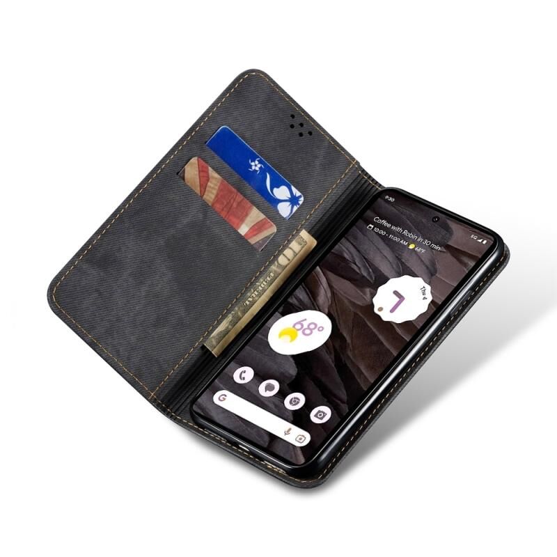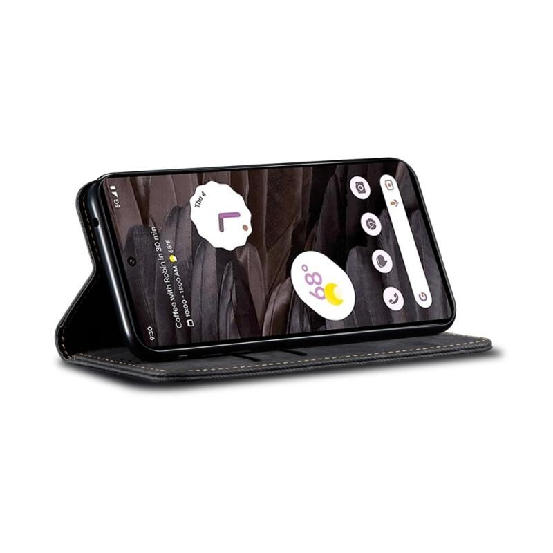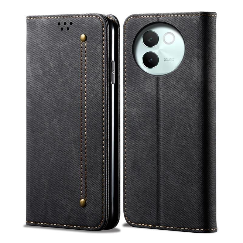 Θήκη τηλεφώνου από δέρμα με υφή denim για vivo V30E 5G (Μαύρο)