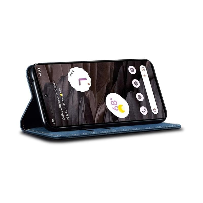 Θήκη τηλεφώνου από δέρμα με υφή denim για vivo V30E 5G (Μπλε)