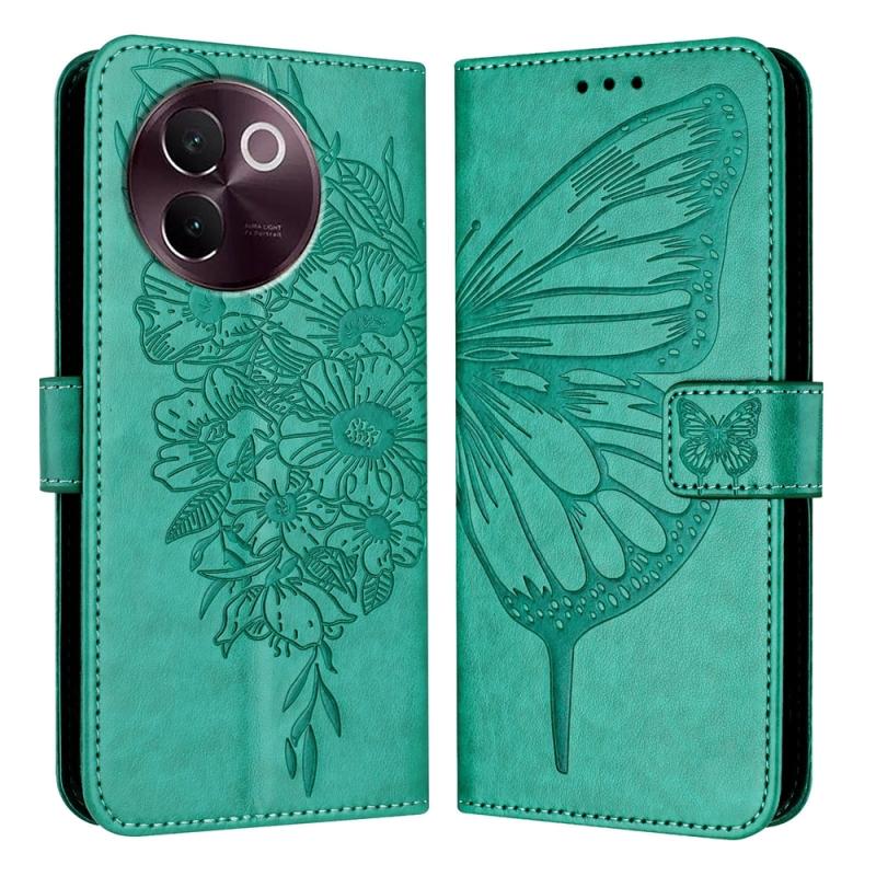 For vivo V30e 5G Global Embossed Butterfly Leather Phone Case(Green)
