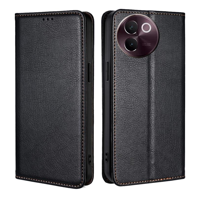 Θήκη τηλεφώνου από δέρμα με μαγνητική έλξη, συμπαγούς χρώματος, για vivo V30e 5G (Μαύρο)
