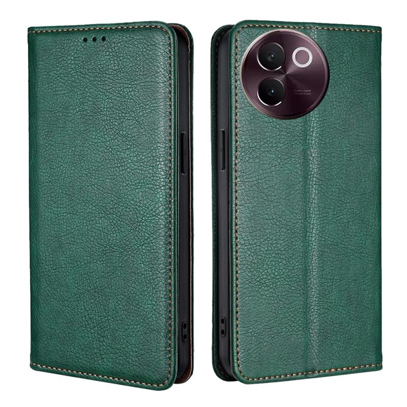 Θήκη τηλεφώνου από δέρμα με μαγνητική έλξη, συμπαγούς χρώματος, για vivo V30e 5G (πράσινο)