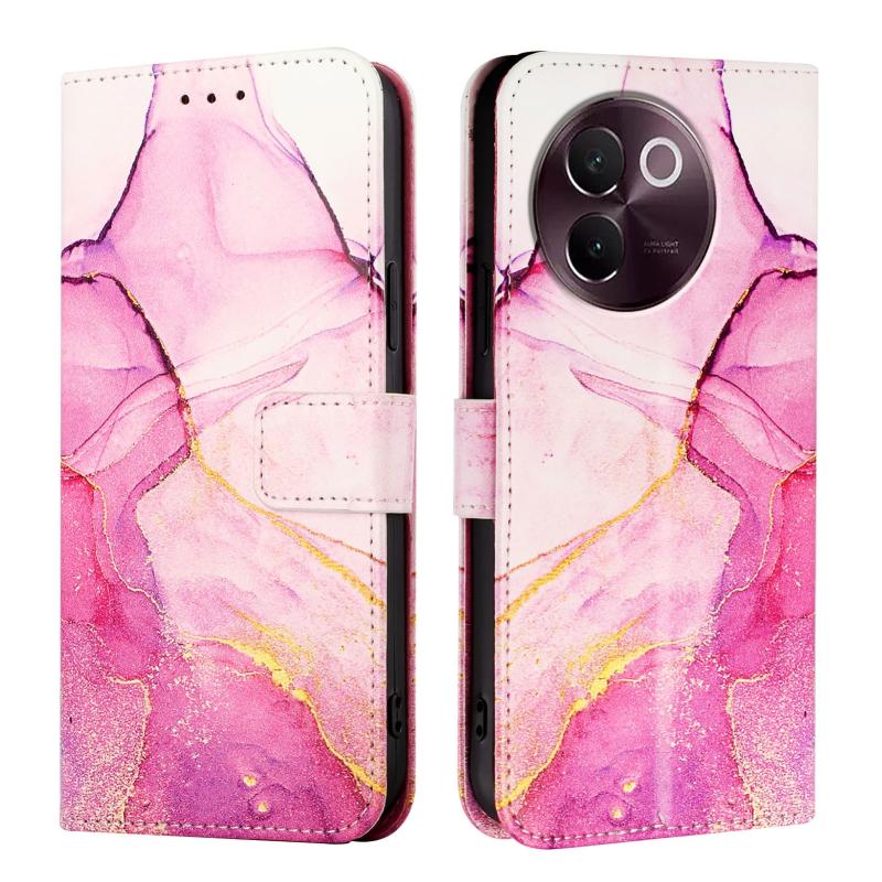 For vivo V30e 5G Global PT003 Marble Pattern Flip Leather Phone Case(Pink Purple Gold)