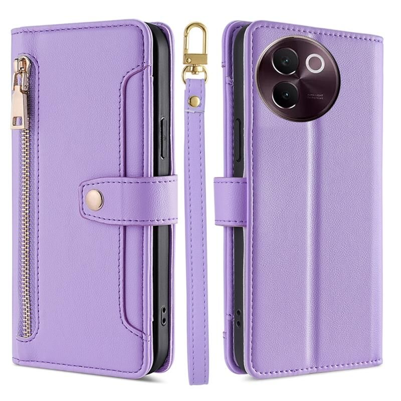 Για vivo V30e 5G Παγκόσμια Πρόβατα Υφή Cross-body φερμουάρ πορτοφόλι δερμάτινη θήκη τηλεφώνου (Μωβ)