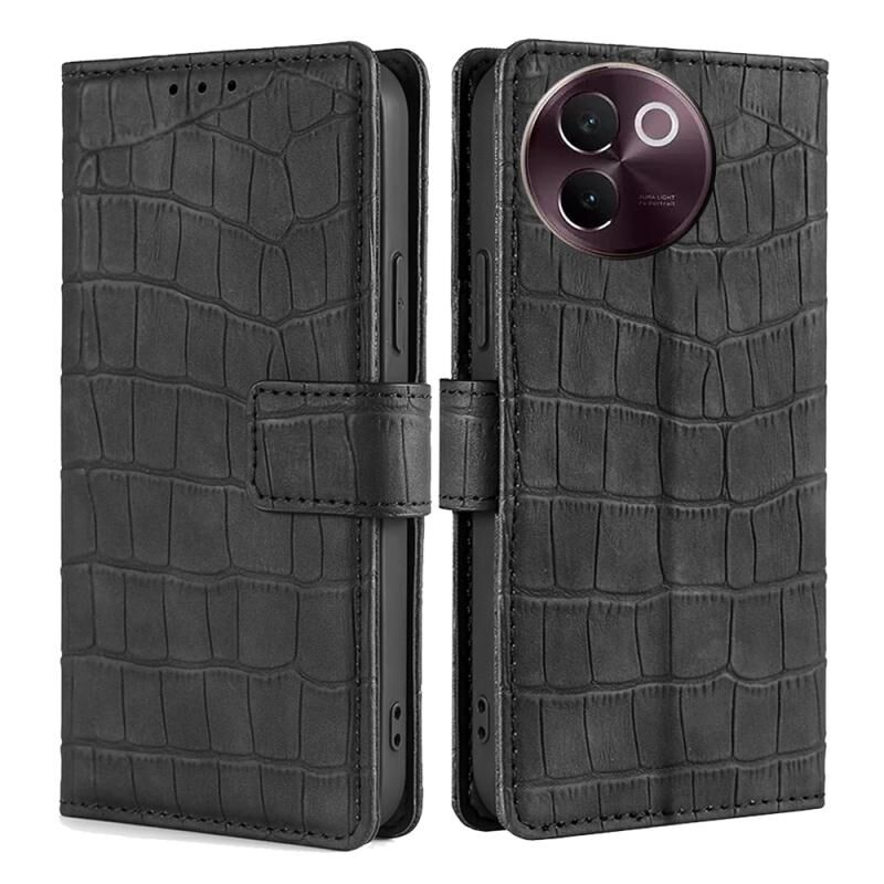 Θήκη τηλεφώνου δερμάτινη με μαγνητικό κούμπωμα και υφή κροκόδειλου για vivo V30e 5G (Μαύρο)