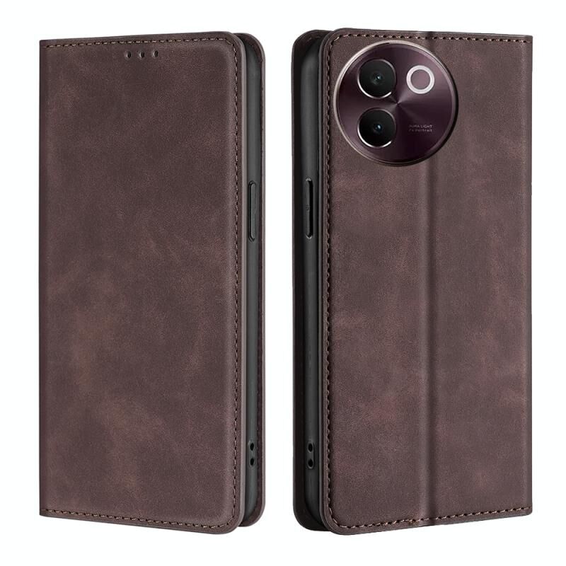 Για vivo V30e 5G Παγκόσμια αίσθηση δέρματος μαγνητική δερμάτινη θήκη τηλεφώνου (Σκούρο καφέ)