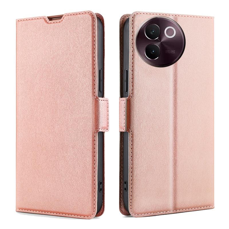 Θήκη τηλεφώνου δερμάτινη, οριζόντια, αναδιπλούμενη, με λεπτό σχεδιασμό και πλευρινές αγκύλες για vivo V30e 5G (Ροζ χρυσός)