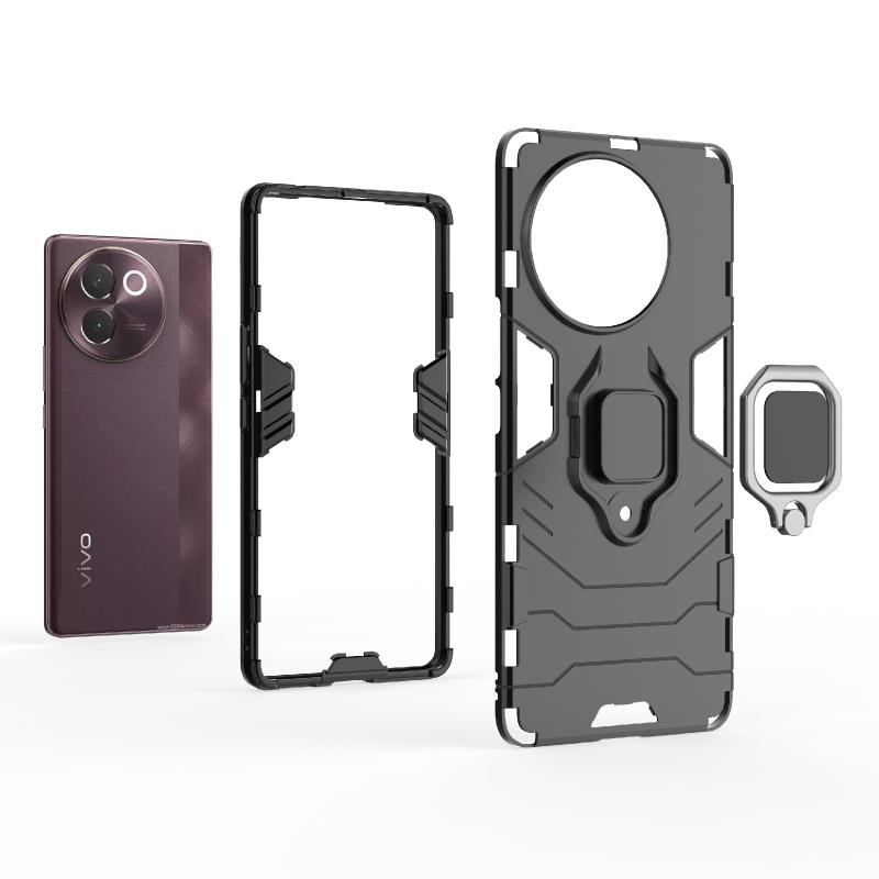 For vivo V30E 5G Shockproof PC + TPU Holder Phone Case(Navy Blue)