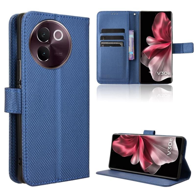 Θήκη τηλεφώνου από δέρμα με υφή διαμαντιού για vivo V30e 5G / V40 Lite 5G (Μπλε)