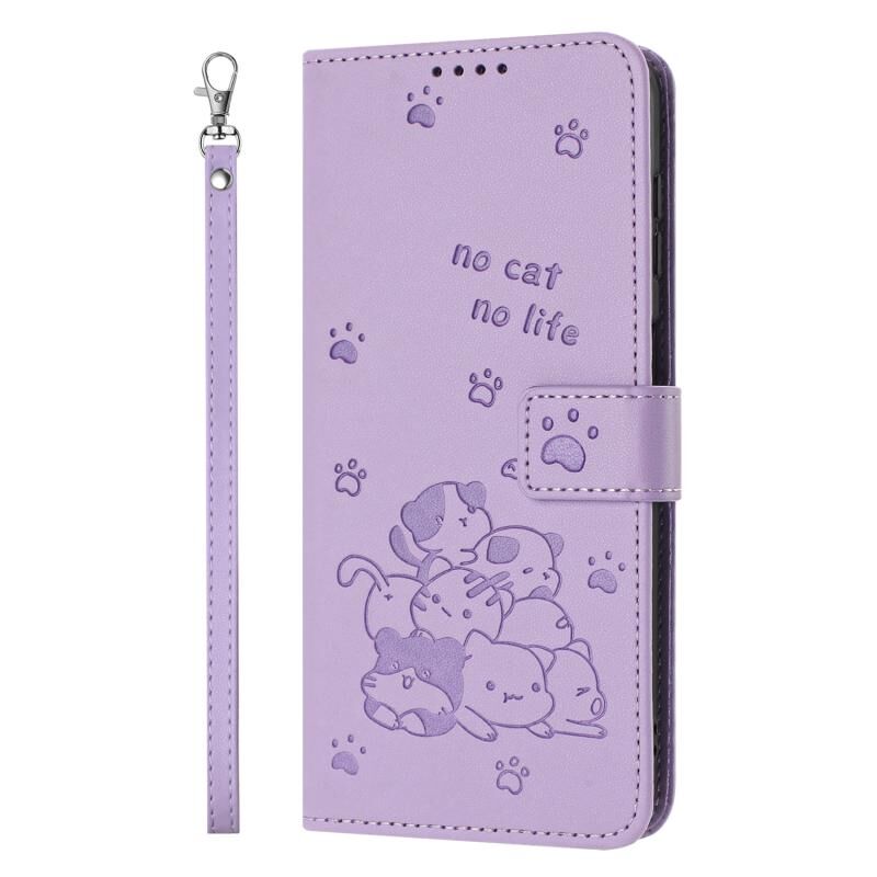 Θήκη δερμάτινη για vivo V30e 5G / V40 Lite 5G με ανάγλυφο σχέδιο γατάκι και κορδόνι (Μωβ)