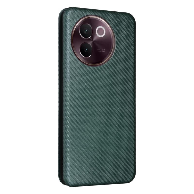 Θήκη τηλεφώνου από δέρμα με υφή ανθρακονημάτων για vivo V30e (Ροζ)